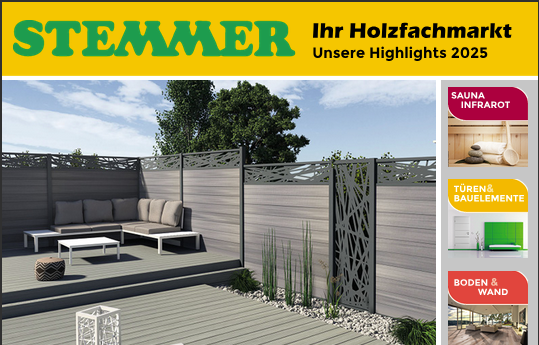 - Nutzen Sie unseren Stemmer-Komplettservice für Holzdecks und Terrassendielen, von der fachgerechten Beratung bis hin zur Montage - auf Wunsch alles aus einer Hand